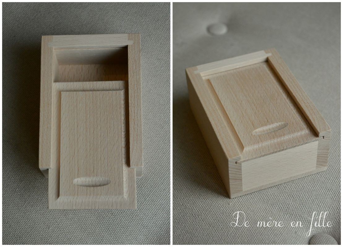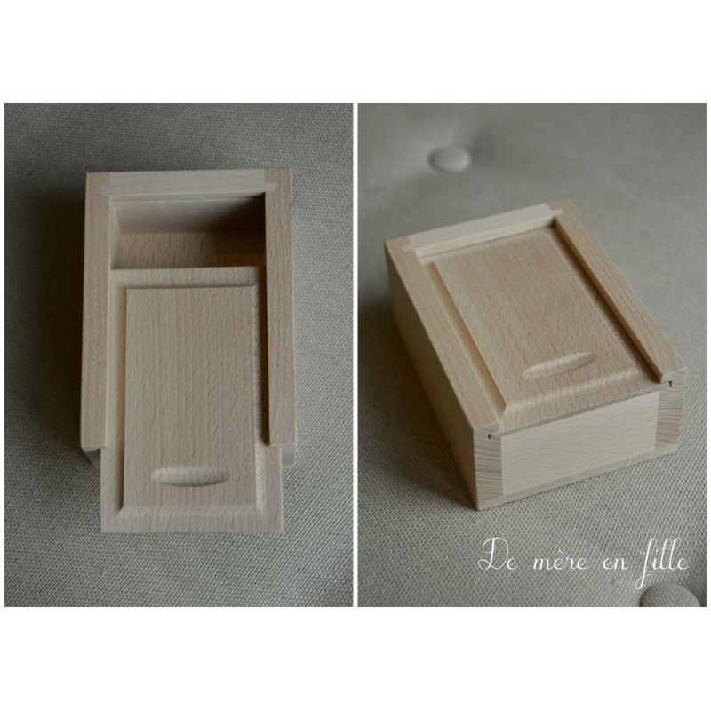 Jolie boîte en bois coulissante. Vous pourrez y ajouter une jolie broderie sur le couvercle