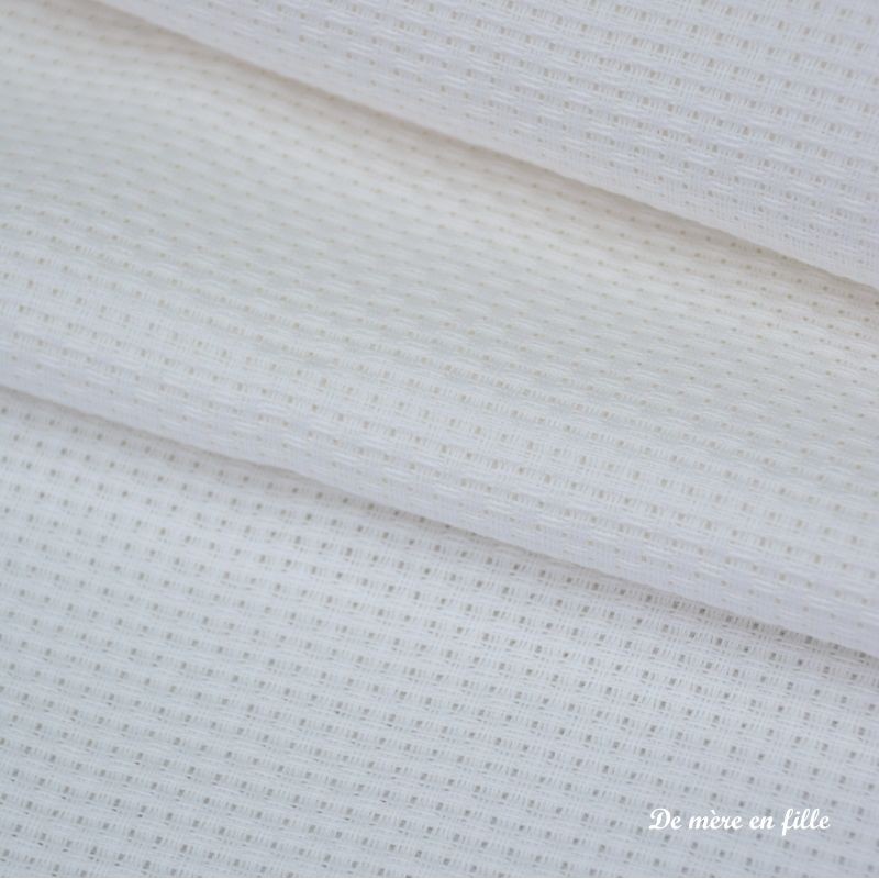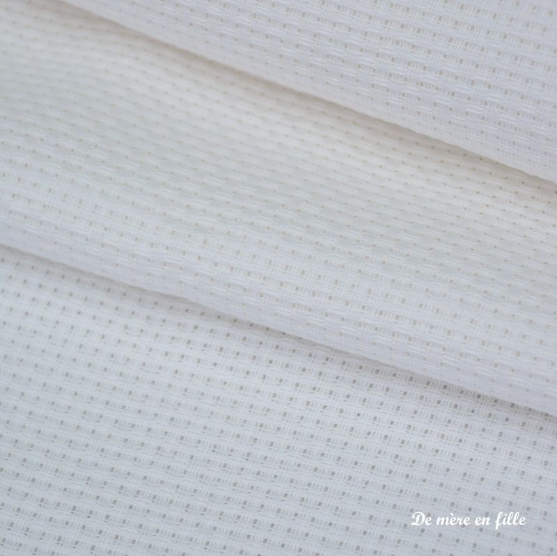 La toile Aïda 5,5 points est parfaite pour débuter la broderie au point de croix. Elle est idéale également si vous avez des difficultés visuelles. Contrairement à la toile de lin et à l'étamine, on brode tous les trous, 1 carré = 1 croix. Vous la broderez avec 2 brins de coton et vous obtiendrez 5,5 croix au cm.