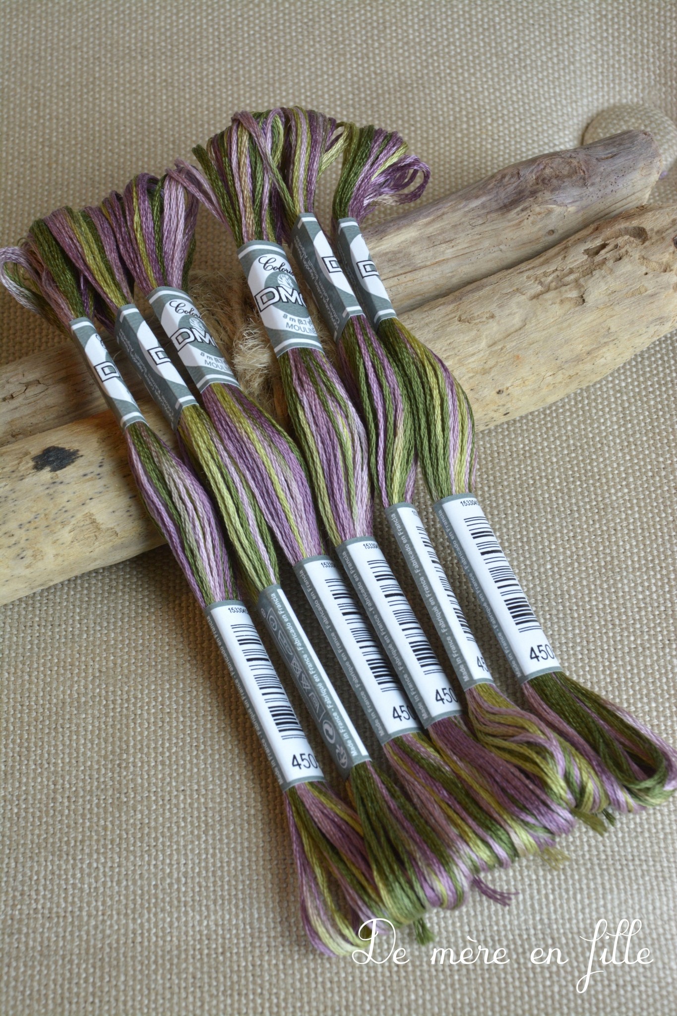 échevette de 8 mètres - 6 brins divisibles - 100% coton - Dégradé de 4 coloris différents