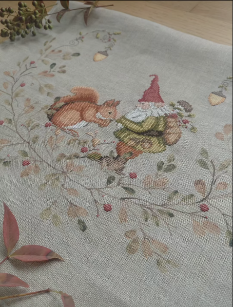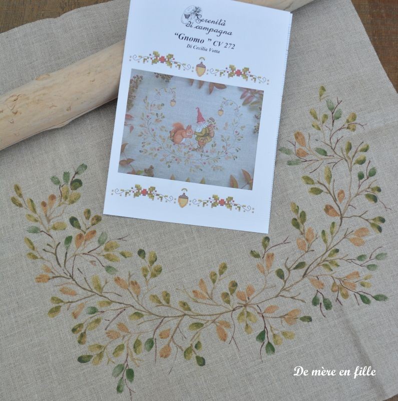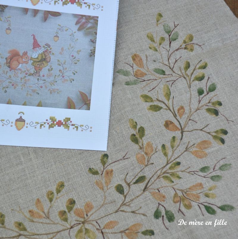 Diagramme papier en couleur + toile de lin 12 fils peinte à la main par Patrizia